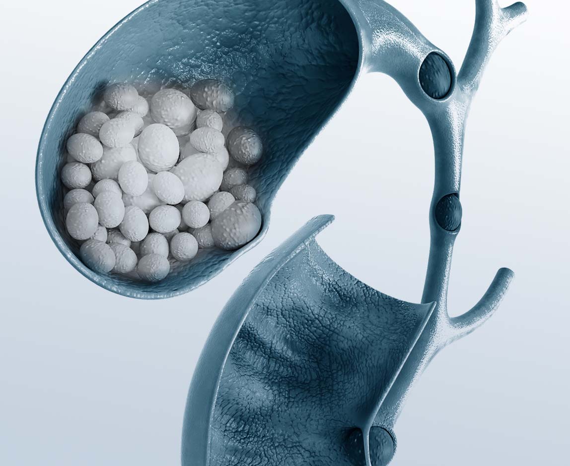 Normally, bile acids and proteins prevent the formation of stones. However, when there is an imbalance in the bile components, small pebble-like deposits called gallstones can form in the gallbladder.